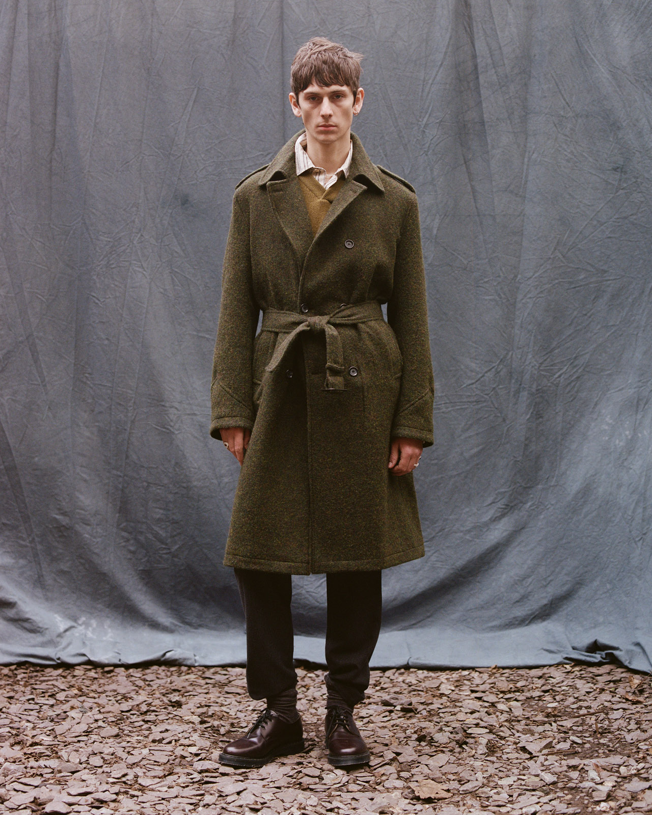 Our Autumn 2025 collection channels the rebellious spirit of 1950s Beatnik philosophy, blending rich natural fabrics like wool, low impact cotton, and suede with military-inspired outerwear and wide-leg tailored silhouettes. Deep autumnal tones meet modern craftsmanship, offering sustainable, contemporary menswear with timeless layering and textural appeal.