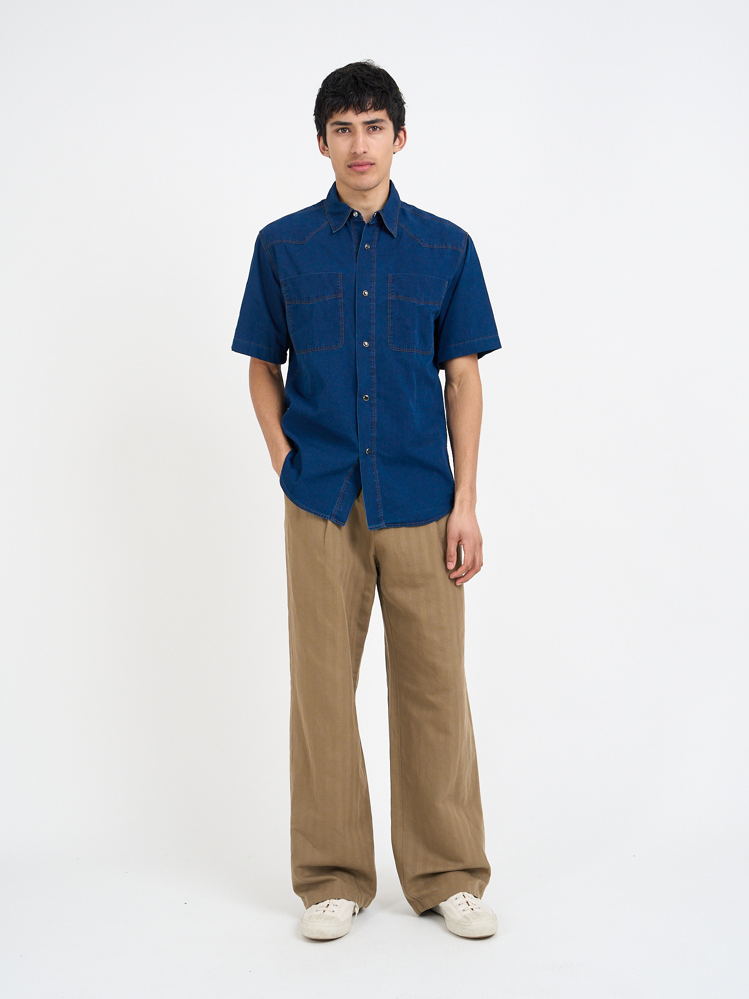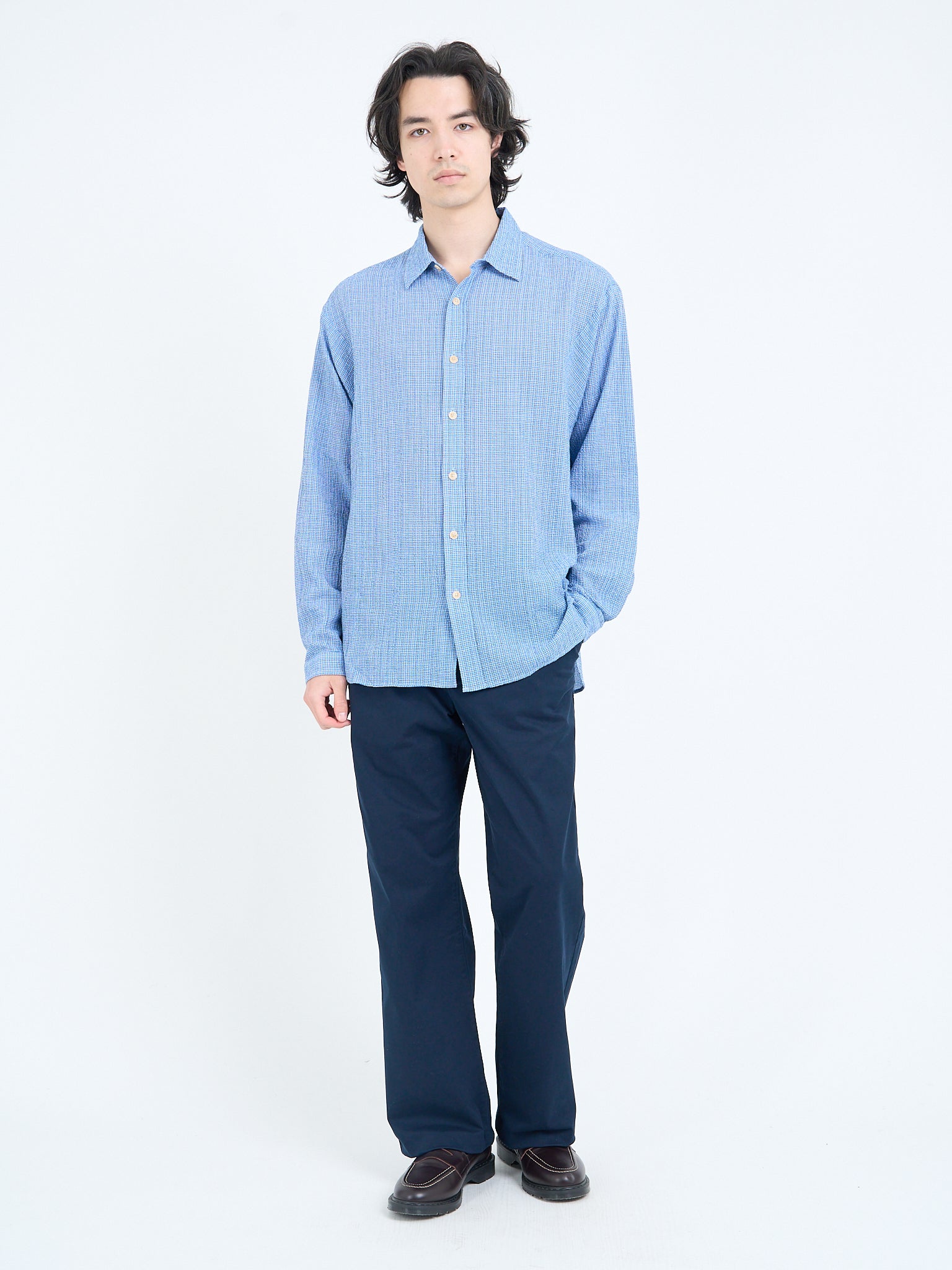 At Oliver Spencer, we've always seen shirts as a central pillar to our collections. They are the glue that stick looks together, providing a valuable layer and a versatile collar to frame the face and create contrast. While you might think a shirt is a shirt is a shirt, factors such as fabric, cut, and collar style can have a profound affect on the quality and how you wear it. All of our shirts lean into a casual-smart-casual aspect, mostly because of the soft collar constructions we've always favoured, as well as soft fabrics such as organic cotton and linen.