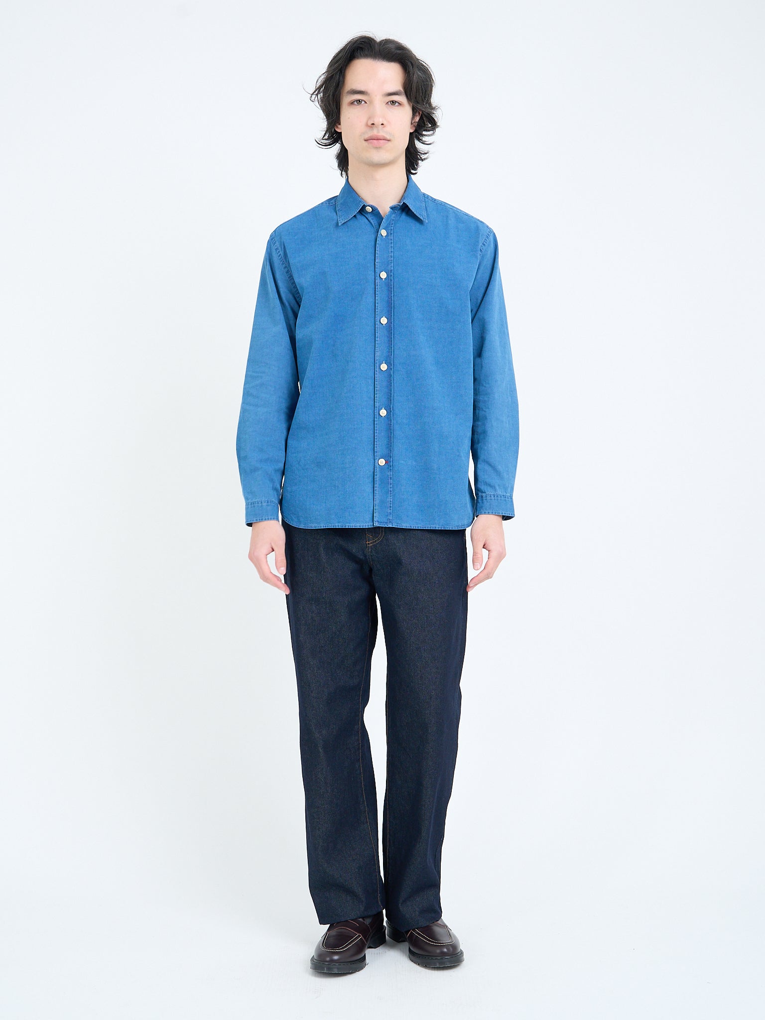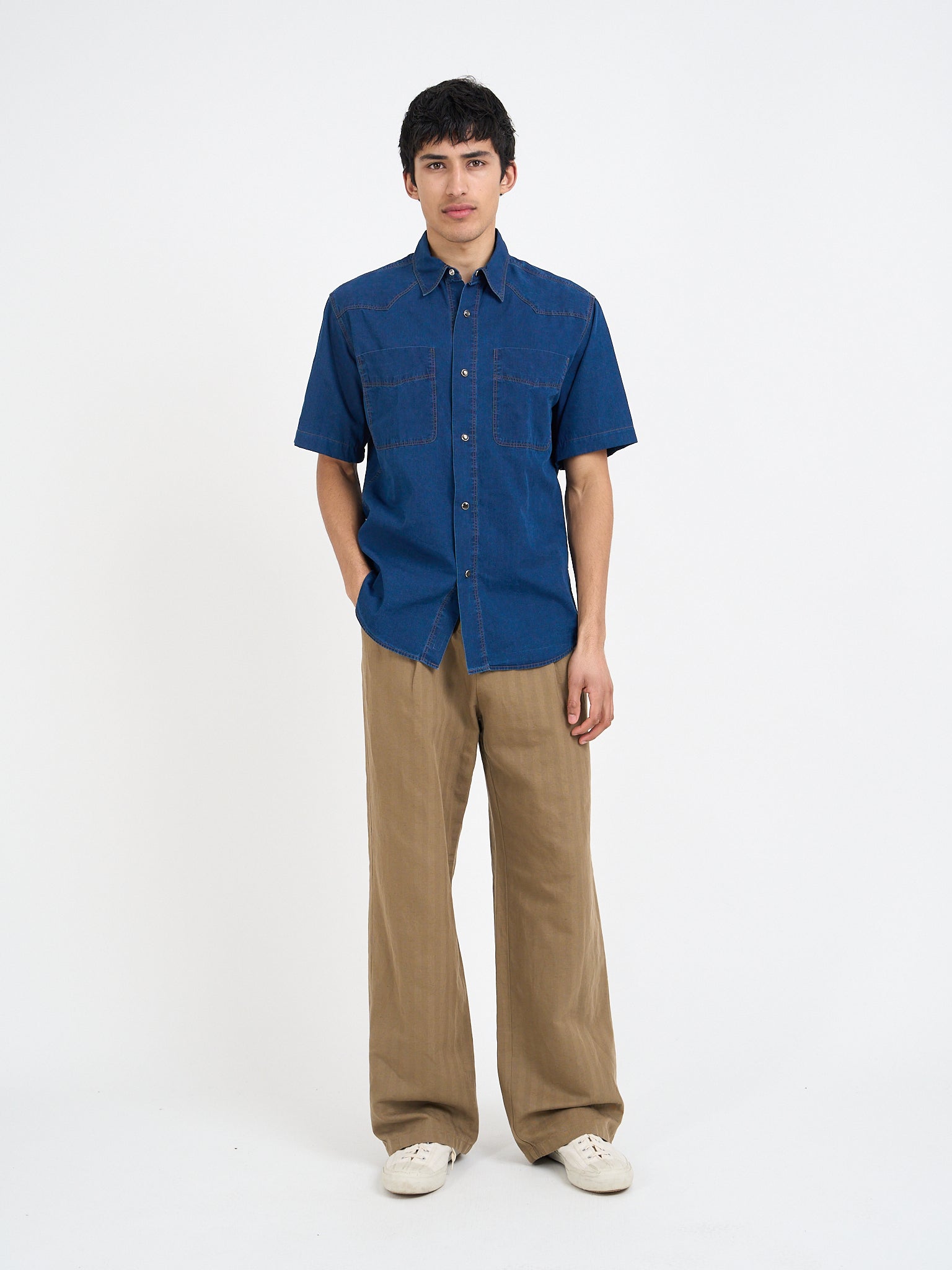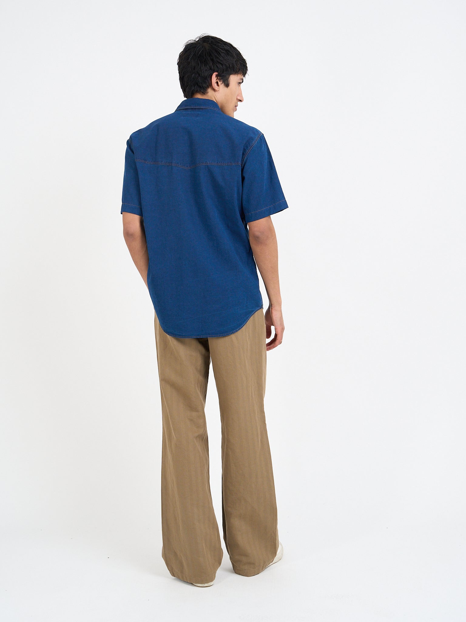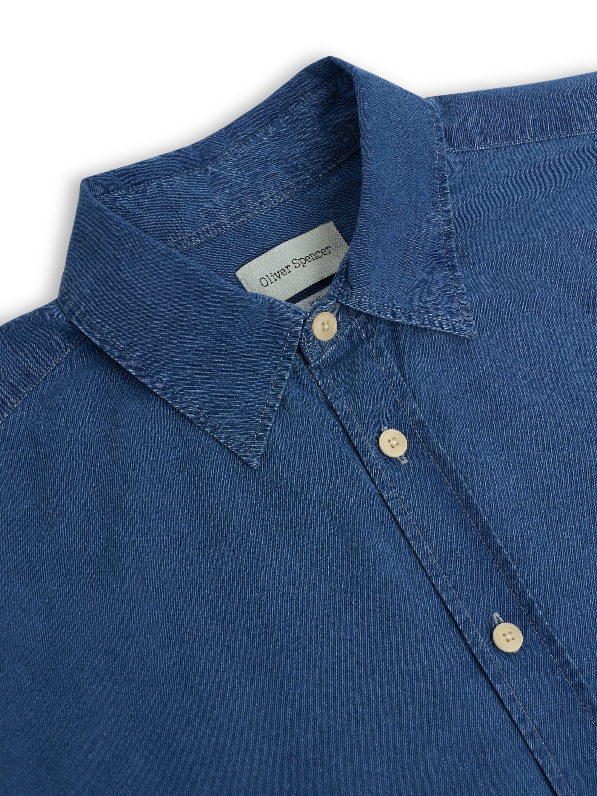 Throughout the collection we’ve used a variety of indigo-dyed cotton cloths because we love their handle and colour. New for this season, the Waterford indigo fabric is the darkest, richest indigo dye we have released. The fabric is a seersucker cloth, hence it’s beautifully tactile. The Kildale is a perennial favourite at Oliver Spencer, and one to which we’ve applied a few different indigo rinses. Finally, the Faye cloth, similar in depth and tone to the Waterford fabric, but with one important distinction - a subtle herringbone weave.